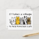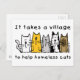 Design features a motley group of homeless cats asking us to remember that "It takes a village" to help homeless animals. Cute pet illustration and gift idea for cat lovers and kitten lovers. Especially, the wonderful people who rescue, foster, and adopt homeless cats!