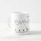 Takeshi spelled out in amino acids as T A K E S H I (Threonine Alanine Lysine Glutamic acid Serine Histidine Isoleucine) on a mug for the scientist in you.
