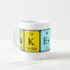 Takeshi spelled out as Ta K Es H I (Tantalum Potassium Einsteinium Hydrogen Iodine) on a mug for the scientist in you.