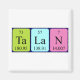 Talan spelled out as Ta La N (Tantalum Lanthanum Nitrogen) on a magnet for the scientist in you.