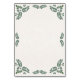 This Talavera Green Floral Minimalist Spanish Wedding Table Number design features a minimalist approach with delicate, symmetrical green floral motifs placed in each corner and along the edges. The small, leaf-like shapes create a sense of movement while maintaining an airy, open space in the center, allowing for ample text placement. The simplicity and elegance of the pattern evoke traditional Talavera tiles, giving the design a classic Mexican artisanal feel.