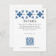 An elegant Mexican wedding details card with a Talavera tile inspired design. Perfect for your Spanish or Mexican wedding. See my Talavera Style Mexican Wedding Collection for more coordinating items.