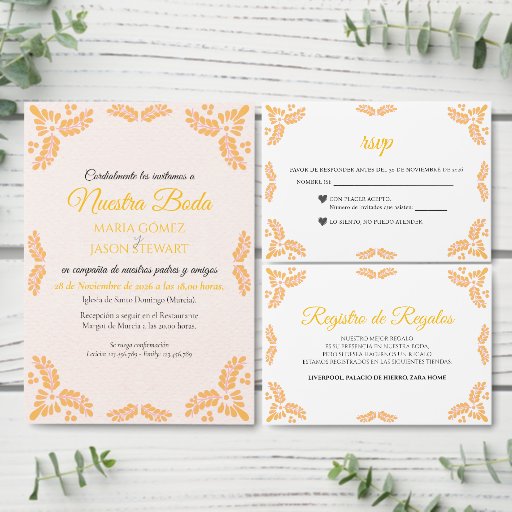 Talavera Yellow Floral Minimalist Spanish Wedding RSVP Card