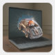 The image is both funny and surprising, with a futuristic mood, vividly blending the digital world with reality—as if a playful fantasy world had burst through the screen.