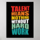 A bold and inspiring motivational typography design featuring the powerful phrase “Talent Means Nothing Without Hard Work.” Styled with a retro vintage aesthetic, the artwork uses distressed textures and vibrant gradient colors transitioning from red to teal, creating a strong visual impact against a dark background. Perfect for print-on-demand products such as t-shirts, hoodies, posters, and wall art, this design appeals to entrepreneurs, athletes, students, and anyone driven by discipline, hustle, and success mindset.