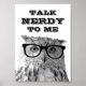 Talk nerdy to me | Funny quote owl poster Funny animal print design with humourous quote. Nerdy bird with glasses. Cute gift idea! Also available as t shirt. Custom background colour.