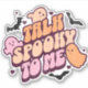 Colourful grunge Halloween "Talk spooky to me" text design with cute, funny, smiley ghosts, hearts and bats decoration