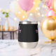 Talk THIRTY To Me 30th Birthday Party Neon Pink Thermal Wine Tumbler features a modern pink neon text "Talk Thirty to me!" in modern calligraphy script on a black background. Personalised with your custom name. Designed by Evco Studio www.zazzle.com/store/evcostudio