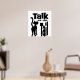 Black and white design with a black cat walking away and "Talk to the Tail" at the right.