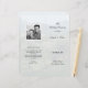 Tall, folded wedding program template with a scenic background of mountains and hydrangea trees. Add a picture of the couple to the back of this tall program with a personalised "thank you" message to family and guests. Template text inside makes it easy to customise with charcoal grey printed text. **Please do not change the paper type.