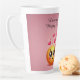 Embrace the warmth of 'Tall Latte Love,' a charming latte mug for couples with heart-shaped handles that interlock. The delightful pink background hosts adorable emojis sharing a loving gaze, making every sip a shared moment of affection.
