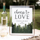 Invite guests to grab a favourite libation from the bar with our charming rustic wedding bar sign. 11x14 dessert table sign features a bottom border of evergreen pine trees in rich shades of hunter green, with "cheers to love" in off-black lettering. Personalise with your names and wedding date underneath the inscription for a charming addition to your bar area.