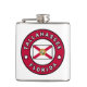 The flask itself is fine. It’s a cheap flask, obviously bought in bulk, however am prepared to overlook that. Given that it is a personalized item, I would have liked to have seen gift boxing instead of the generic packaging. Terrible printing, and/or quality. It’s a cheap, tacky vinyl. It is not cut straight and is also applied in a way that it is overhanging the bottom, causing the glue to catch on items and it will eventually roll and tear, damaging the wrap.