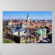 Painting of Tallinn aerial downtown view. View from above of Tallinn Old Town in summer, Estonia.