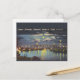 Beautiful night view of the old Eugene Talmadge Memorial Bridge in Savannah, GA, from the 1930s-40s. This illustration shows a moonlight scene and evening lights as it would reflect in the Savannah River.