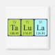 Talula spelled out as Ta Lu La (Tantalum Lutetium Lanthanum) on a magnet for the scientist in you.