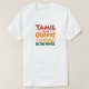 This is a vibrant typographic artwork celebrating the heritage of the Tamil language. The design proudly states, "TAMIL is the Oldest Language in the World," using a playful, bold font with a distressed texture. The words are rendered in a warm color palette of red, orange, yellow, and green, creating a cheerful and impactful statement about one of the world's longest-surviving classical languages.