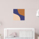 A minimalist design of curvy organic shapes in tan, blue and beige.