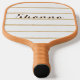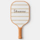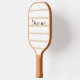 A simple neutral tan and white stripe pickleball paddle that can be personalised..