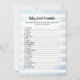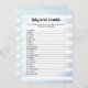 Enjoy playing this Baby Word Scramble baby shower game on soft, blue and white watercolor stripes background. Cute, tan, bunny rabbit on back with templates created for you.