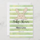 Enjoy playing this Baby Language baby shower game on soft, green and white watercolor stripes background. Cute, tan, bunny rabbit on back with templates created for you.