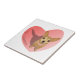 Tan Chihuahua in diamond pink collar in heart Ceramic Tile