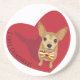 Tan Chihuahua with a bow tie in a red heart Coaster