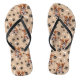 The pattern on these cute flip flops shows an adorable brown and white Corgi puppy smiling at the world. Along with the dog images are white bones and black paw prints. Everything is placed on a light tan background. Perfect for the Corgi fan!