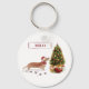Tan Dachshund Funny Christmas Dog with Tree Key Ring