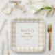Tan gingham square baby shower plate.