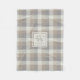 Tan Grey and Ivory Neutral Rustic Plaid Monogram Fleece Blanket