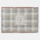 Tan Grey Ivory Neutral Rustic Plaid Monogram Throw Blanket