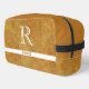Tan Leather Texture Trim White Monogram Name Dopp Kit