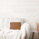 Tan Leather White Linen Look Minimal Farmhouse Cushion