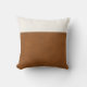 This trendy, minimal design features a faux light saddle brown tan leather look on the bottom two-thirds and a simple solid white linen-look colour block on the top third. A decorative faux leather seam joins the two patchwork pieces, making a stylish addition to your home.
