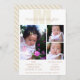A modern monogram design in neutral tan, ecru and white, these 3 photo collage birth announcements are a perfect choice for adoptions as well as traditional new baby announcements. A mix of fonts in pale and darker tan on a classic white background surround the central feature of your 3 photos. Cards reverse to a fun light and dark brown stripe design that compliments the sleek style of the front. Add your photos to these gender neutral monogram birth announcement cards in neutral tan and white, suitable for girls or boys, infants or older children.