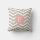 Tan Peach Pink Chevron Monogram Cushion