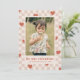 A festive Valentine's Day card with red hearts scattered over a tan chequerboard design. The message and customer information is placed beneath a large photo, and the back of the card features a coordinating pattern.