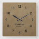 Personalise this modern neutral wall clock design with your own text. Acrylic wall clock is printed in a tan stucco look pattern that can fit into any modern colour scheme and is available in your choice or round or square faces.