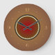A very striking clock design in warm tan with a red circle centre.This simplistic clock has Numerals to match,and is cavailable in square and round shapes .