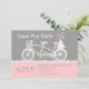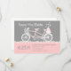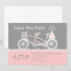 Fun wedding design featuring a flower covered tandem bicycle. A three tier wedding cake is on the back bumper and two love birds with hearts complete the theme. Customise gifts and stationery with your own personalised text. On T-shirts, tote bags, wedding shower invitations, save the date announcements, postage, wedding planners, keepsakes and more! PinkInkArt original!
