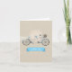 Bicycle-themed weddings are a fun trend in themed weddings. On this faux linen background wedding thank you card, a tandem bicycle symbolises the married couple-to-be riding off together. The bride's seat has a wedding veil wrapped around it and the groom's seat has an untied bow tie wrapped around the handlebars. A bridal bouquet is placed in the bike's basket. A thank you message stands out in a sky blue banner underneath the bike. A customised message prints inside. This message can also be deleted in order to leave the interior blank for you to handwrite your own personal message. Available with matching products with a option for bride's and groom's bike.