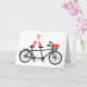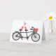tandem bicycle with cute love birds and red hearts, vector drawing, art illustration for wedding invitation, engagement, anniversary, cards.