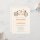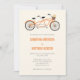A modern wedding invitation featuring a tandem bike with a basket and flowers. Please ask about custom colours!