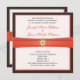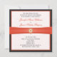 These cheerful and elegant wedding invitations featuring a dark, almost charcoal grey outer border, bright "tangerine tango" orange inner border and fake ribbon, a peach colour faux broach on gold colour finding with pearls and a very pale, off-white damask pattern background for your text. Other sizes and styles are available in the Truly_Uniquely store.