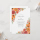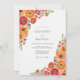 This design features a vibrant collection of watercolor blooms in shades of tangerine, coral, and deep red. Artistic ranunculus and delicate poppies are artfully arranged along the borders, creating a cheerful and warm atmosphere. Lush sage green leaves provide a natural contrast against the clean white backdrop. It is an ideal choice for a sunny outdoor event or a bright seasonal gathering.