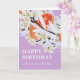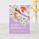 Elegant and chic Happy birthday card with beautiful blooming tangerine branches. Floral botanical card with spring delicate flowers and citrus. Orange, pastel and lilac colours. Add your text.