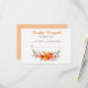 This is a bright and colourful floral wedding RSVP that matches invitations of the same title in our store. It features a pretty floral bouquet in colours of tangerine orange, red, brown and green at the bottom front. Above the image is your custom text in tangerine and brown. The image and text are placed on a white background. The back of the card is soft muted tangerine. Perfect for late summer or autumn events.