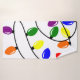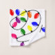This towel set has a Christmas design of tangled lights in red, blue, yellow, green, pink, and purple.