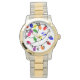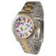 This men's watch has a Christmas design of tangled lights in red, blue, yellow, green, pink, and purple.